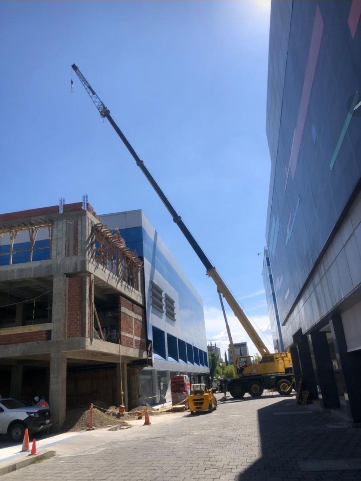 construcción (se mueven más rápido). Con capacidad de hasta 30 toneladas, se utilizan para hacer montajes de equipo y estructura, maniobras, elevación de material o para mantenerlo elevado. Se usan en el montaje de publicidad.